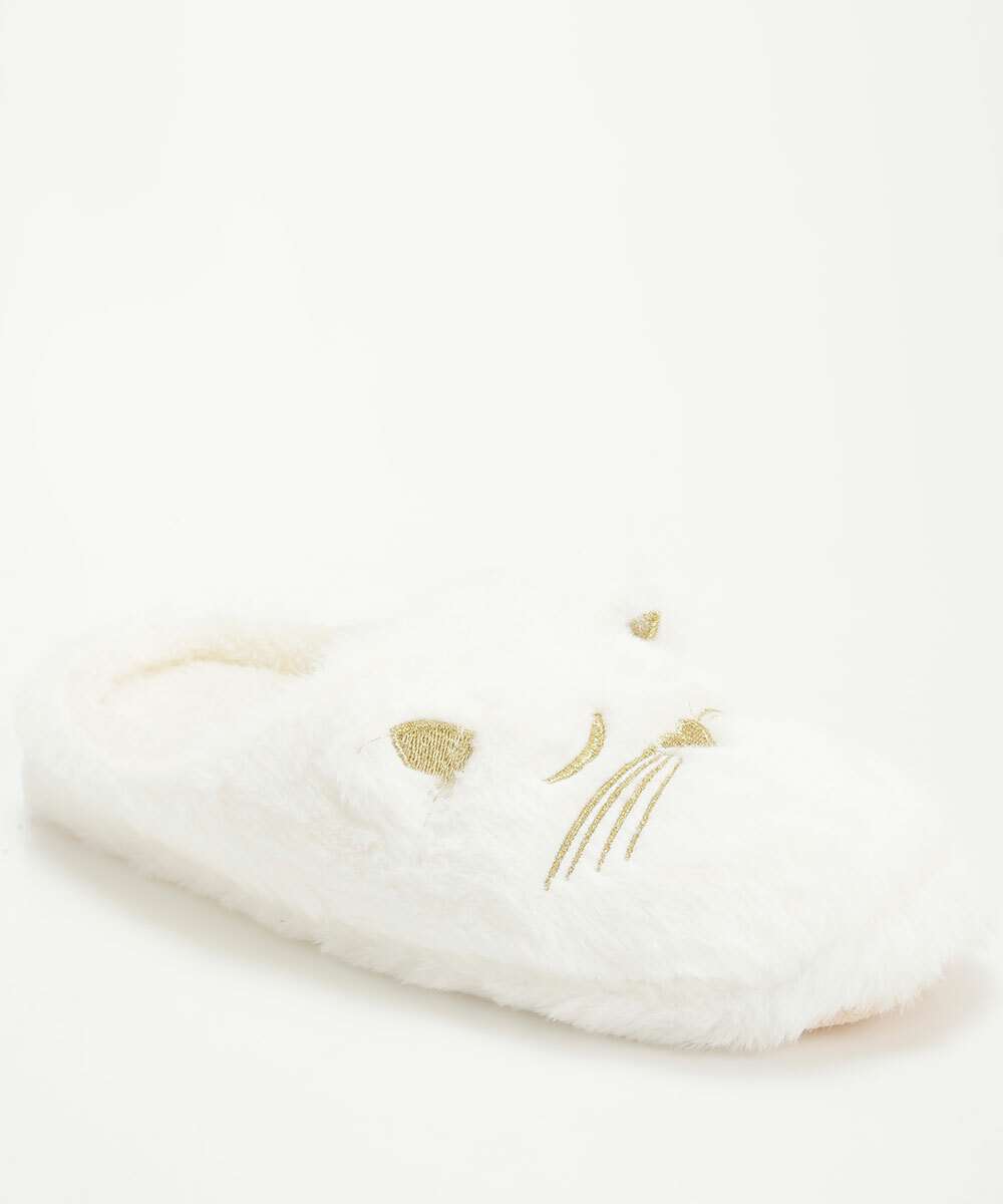 Pantufa Feminina Pelúcia Bordado Gato Marisa