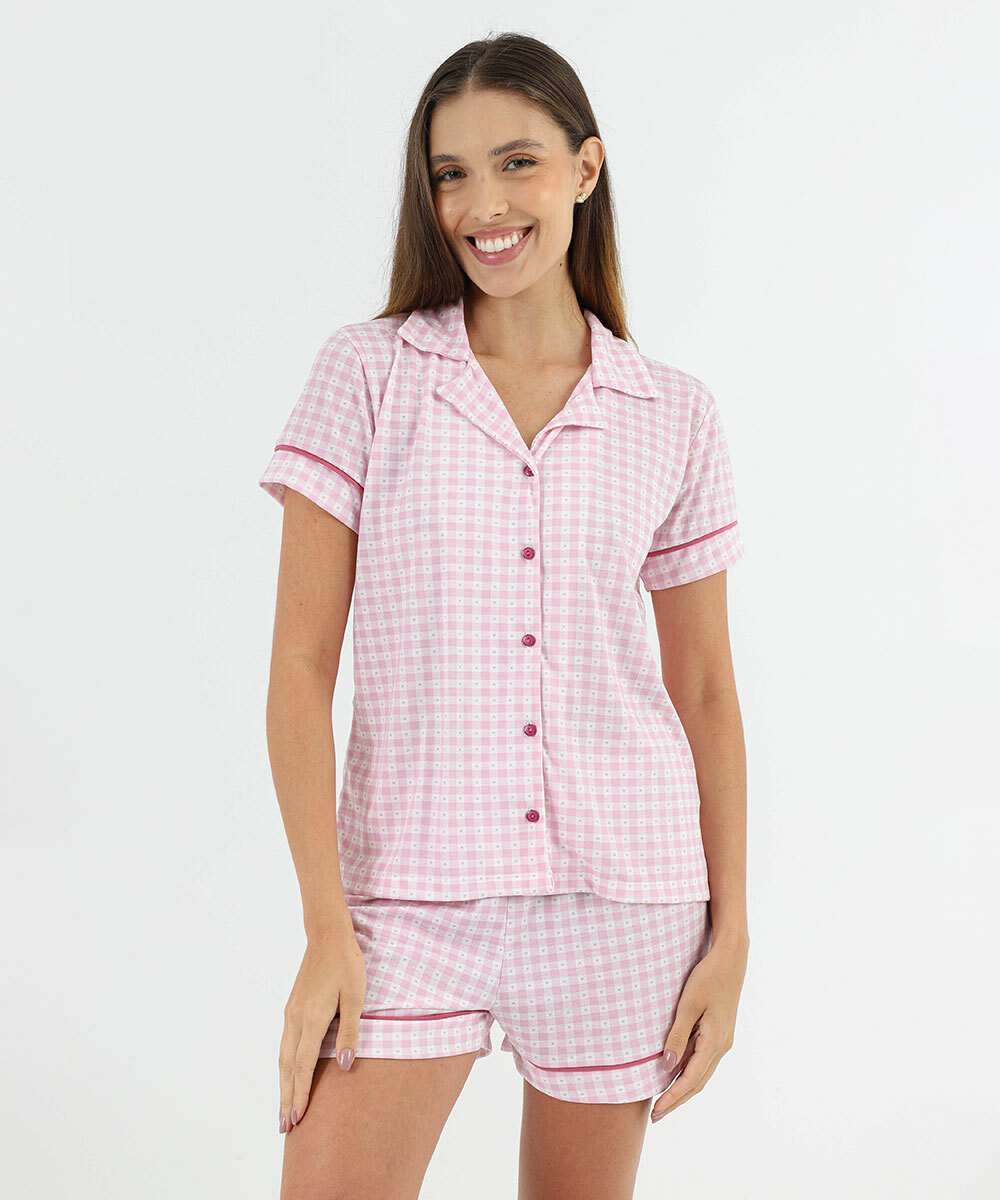 Pijama Americano Feminino Xadrez Marisa Rosa