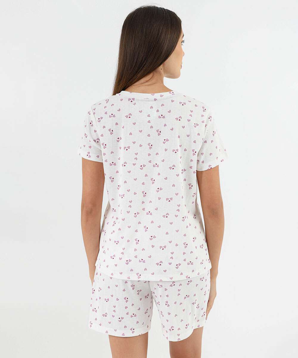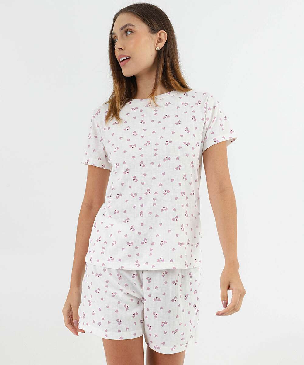 Pijama Feminino Estampa Corações Marisa Off White