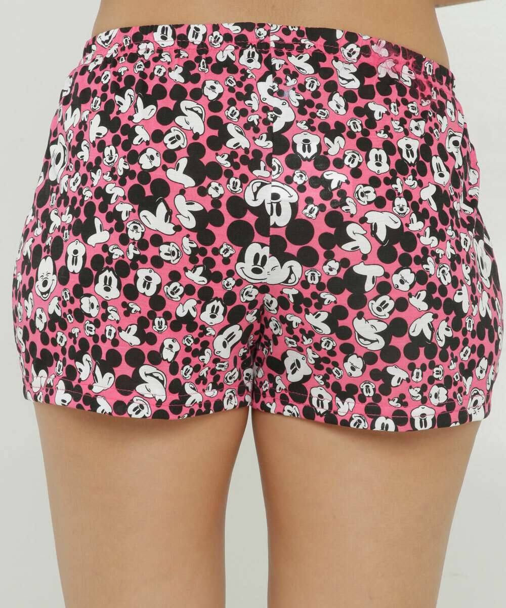 Pijama feminino, composto por blusa e short confeccionados em malha poliéster e viscose. Possui blusa estampa Mickey personagem da Disney e frase, decote redondo, manga curta; short estampado, cós elástico, acabamento e costura no tom.
