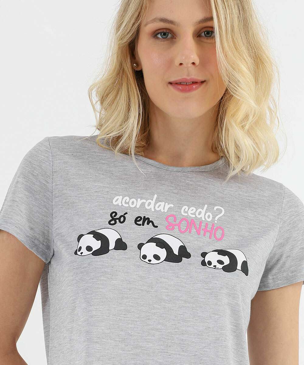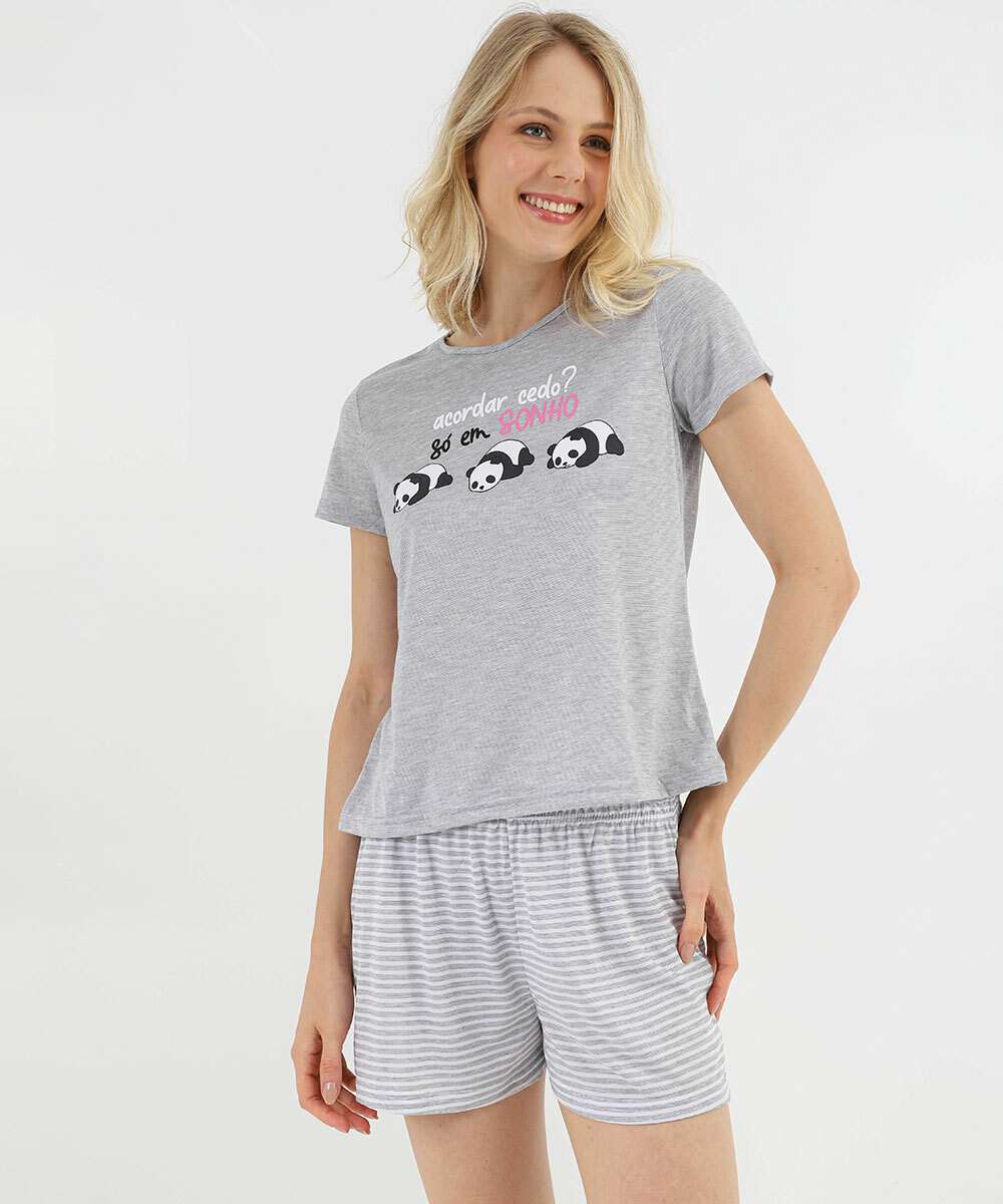 Pijama Feminino Estampa Pandas Marisa Cinza