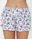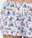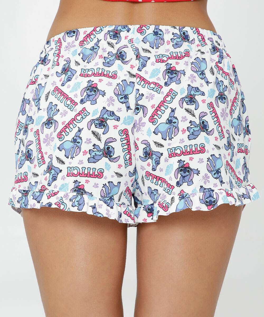 Pijama feminino, composto por blusa e short confeccionados em malha poliéster e elastano com estampa Stitch. Possui blusa decote redondo, alças finas ajustáveis, short cós elástico, acabamento e costura no tom.