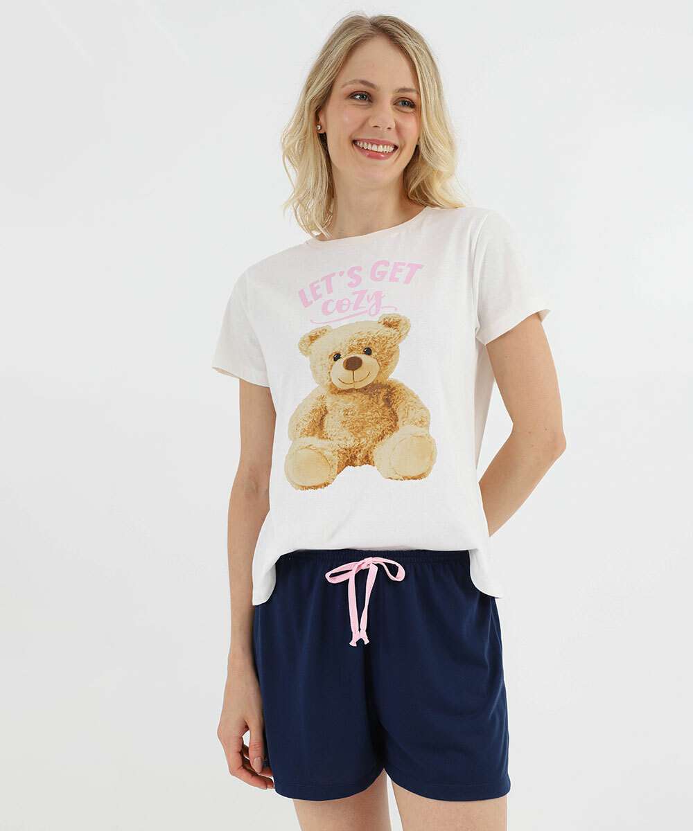 Pijama Feminino Estampa Urso Marisa Off White