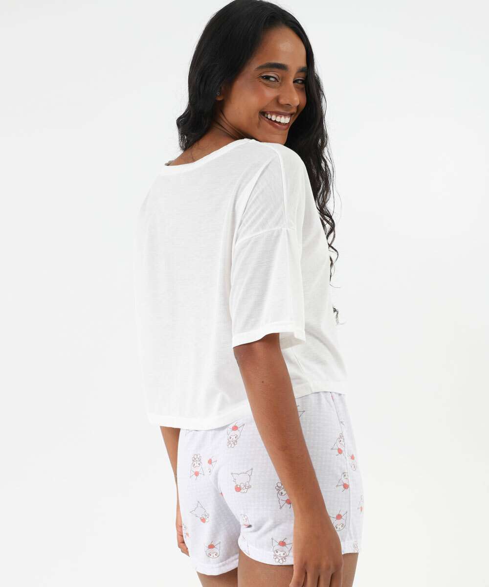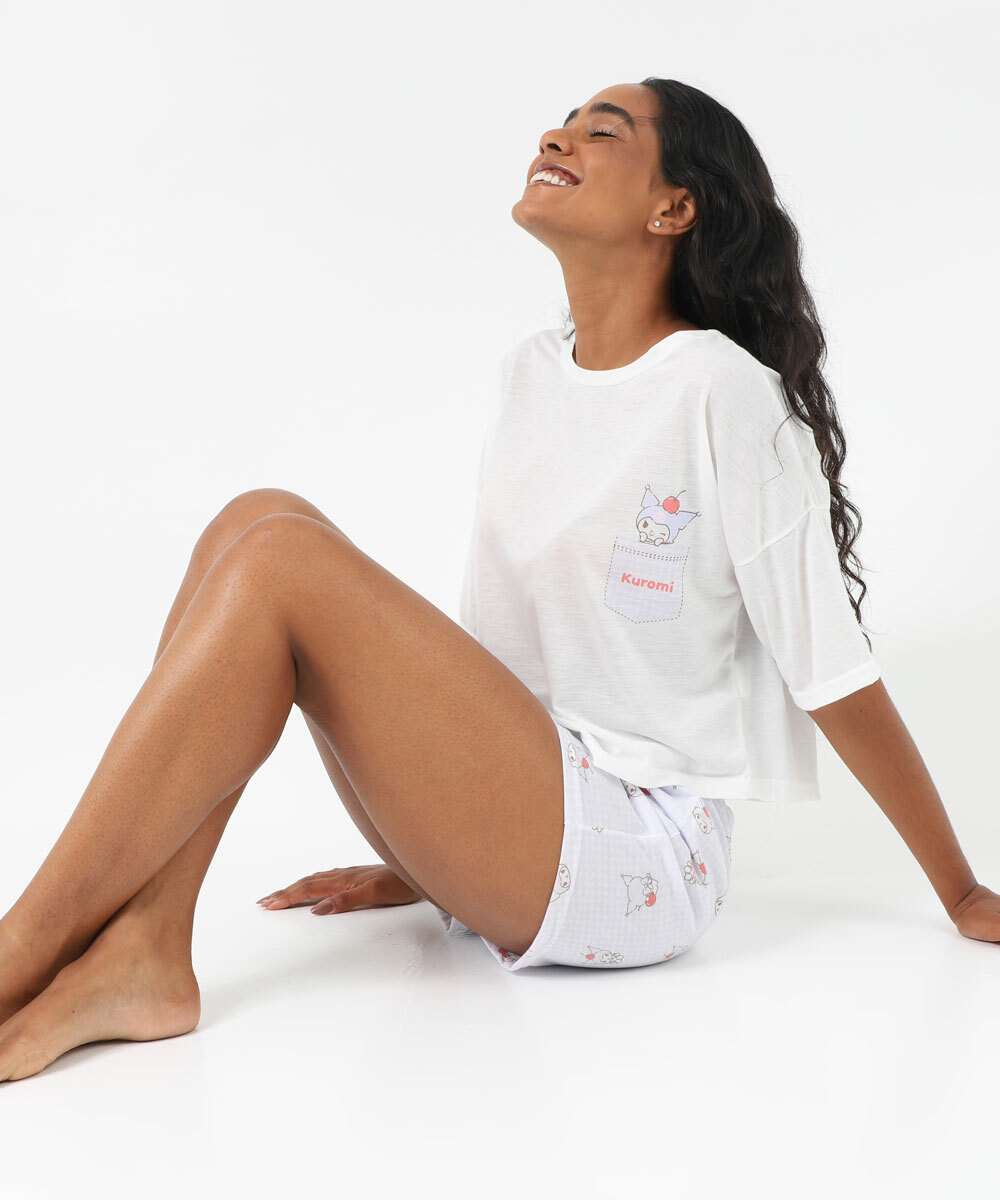 Pijama Feminino Kuromi Manga Curta Sanrio Off White