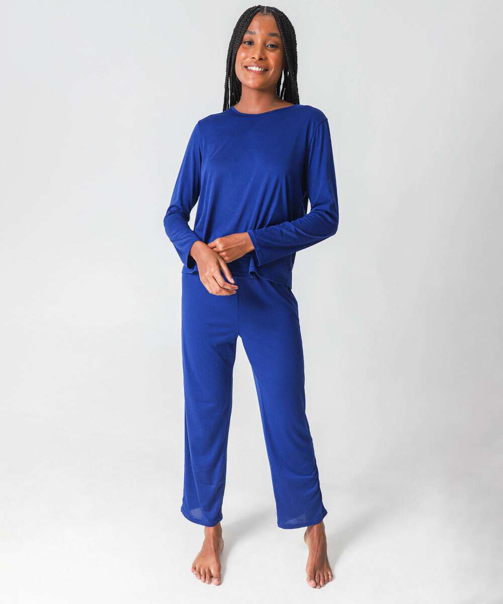 Pijama Feminino Liso Manga Longa Marisa Azul