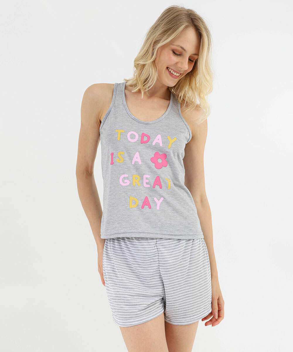 Pijama Feminino Nadador Estampado Marisa Cinza