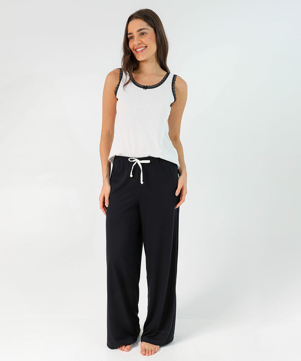 Pijama Feminino Recorte Renda Marisa Off White