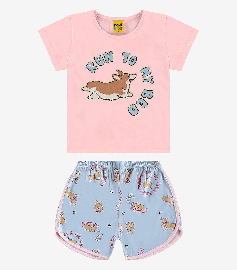 Pijama Infantil Feminino Meia Malha Rovi Kids Azul