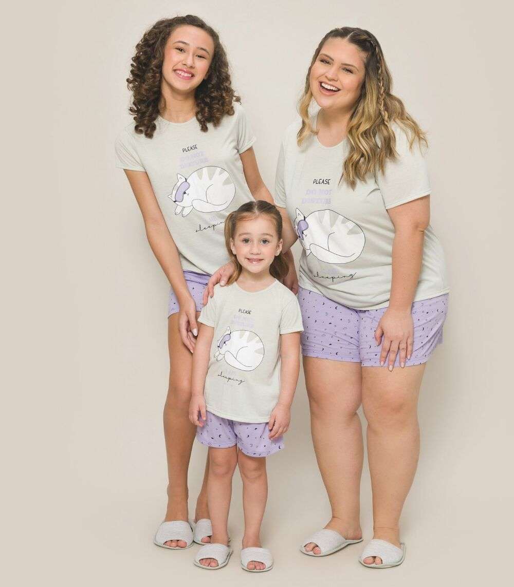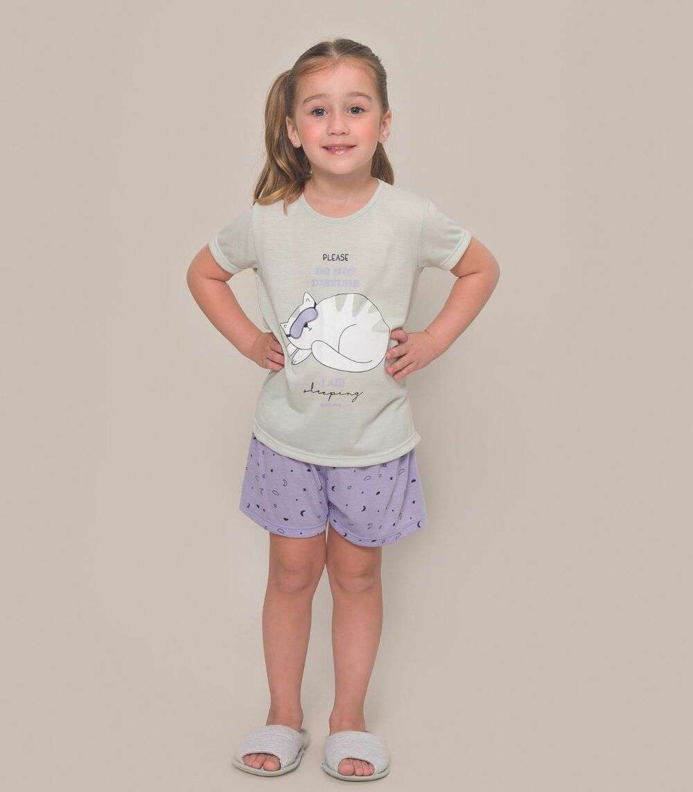 Pijama Infantil Manga Curta Feminino Evanilda Cinza