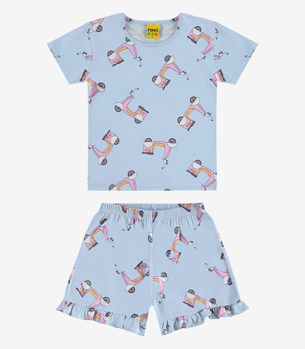 Pijama Infantil Menina Meia Malha Rovi Kids Azul