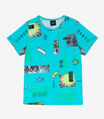 Pijama Infantil Masculino Select. Desenvolvido em Meia Malha, composto por camiseta com gola redonda e estampa rotativa e bermuda com modelagem confortável e elástico na cintura.