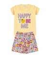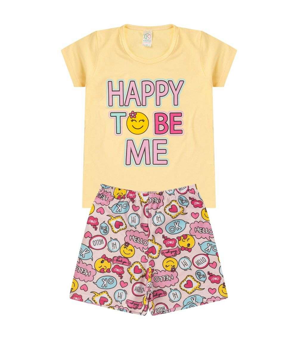 Pijama Juvenil Menina Brilha no Escuro Kappes Amarelo