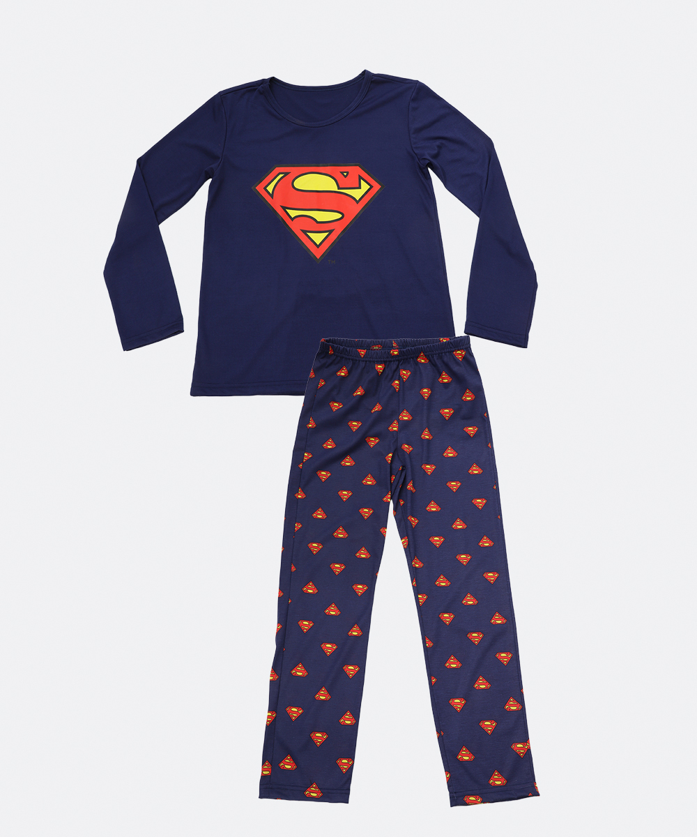 Pijama Juvenil Super Homem Warner Bros Tam 8 a 16 Azul