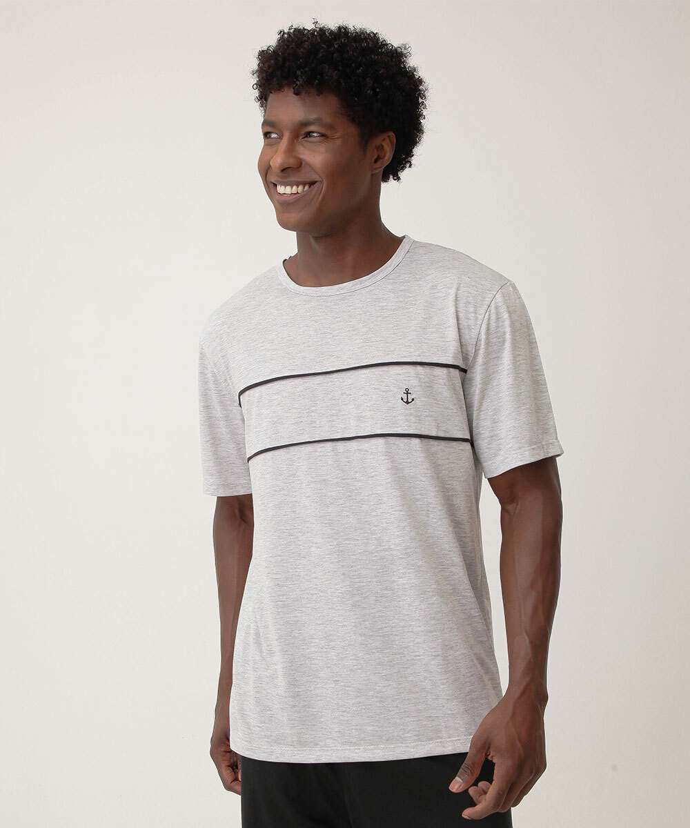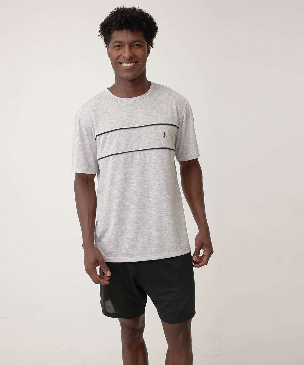 Pijama Masculino Listras Manga Curta Marisa Cinza
