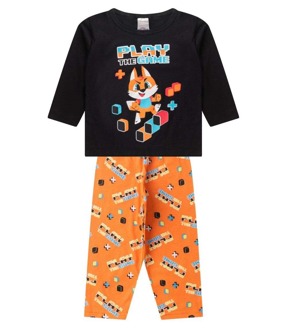 Pijama Menino Manga Longa Brilha No Escuro Kappes Preto