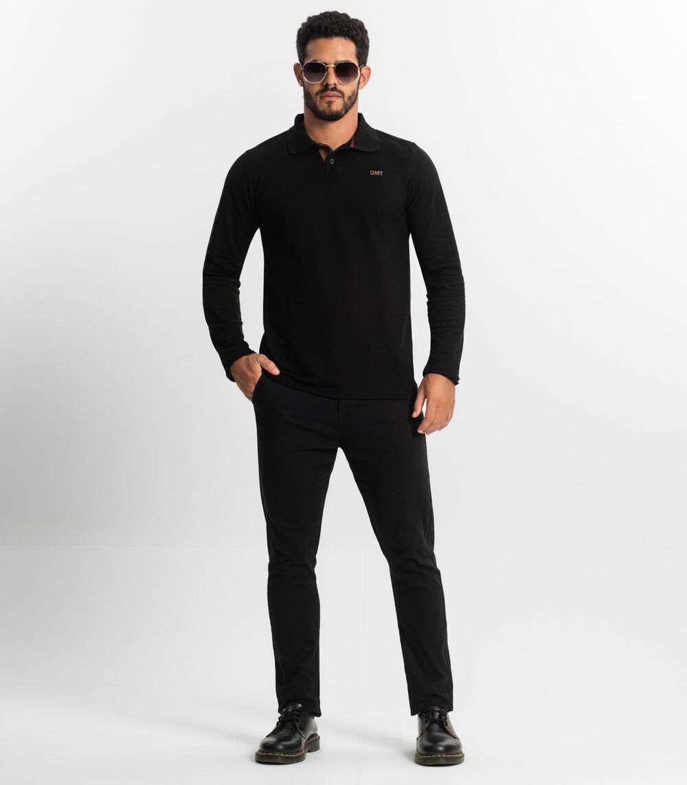 Polo Manga Longa Masculina Diametro Preto