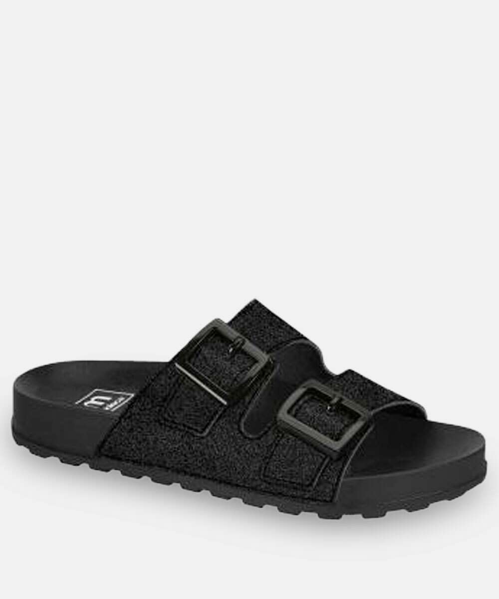 Rasteirinha Feminina Birken Fivelas Glitter Moleca Preto
