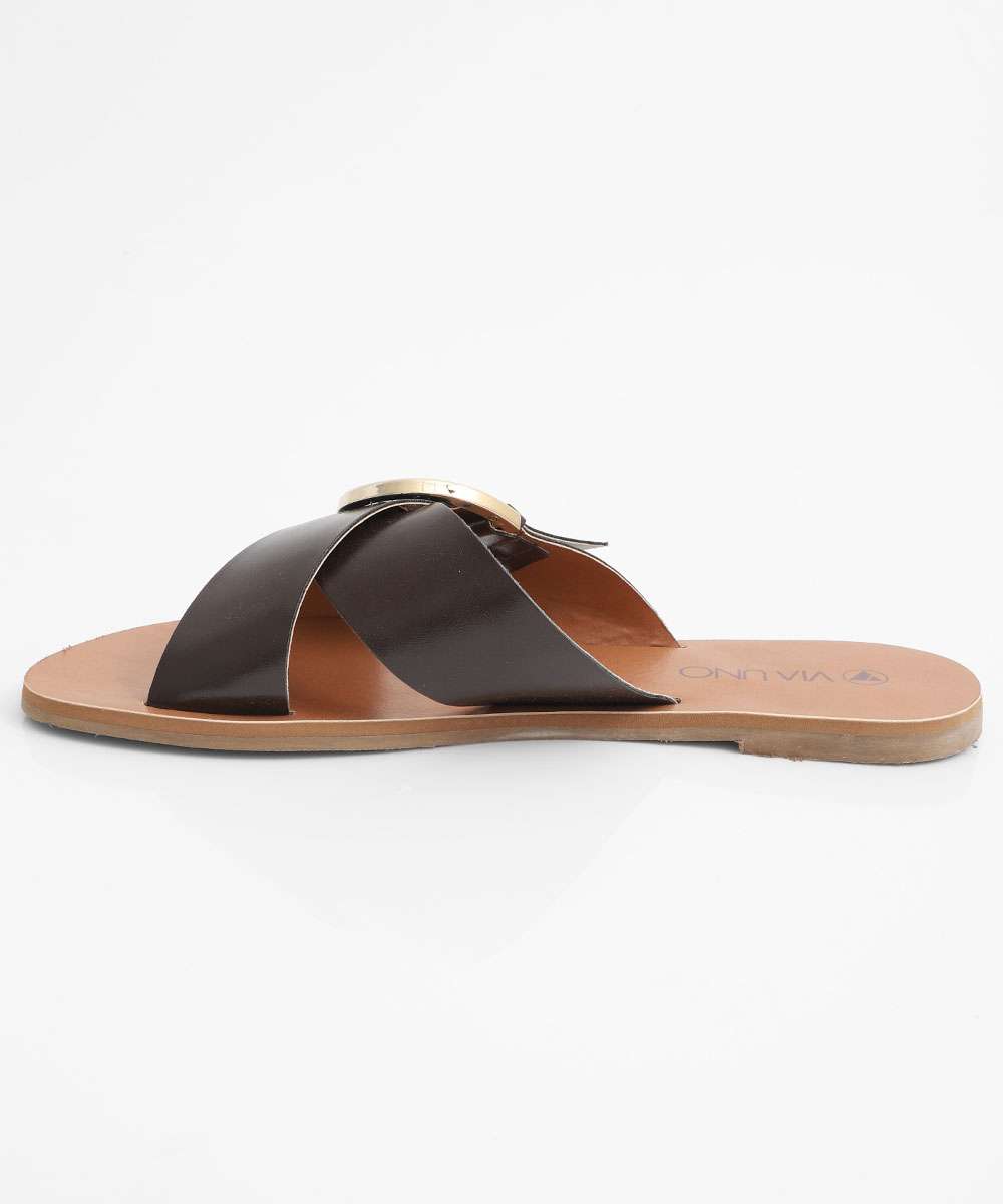 Rasteirinha Feminina Fivela Via Uno Marrom