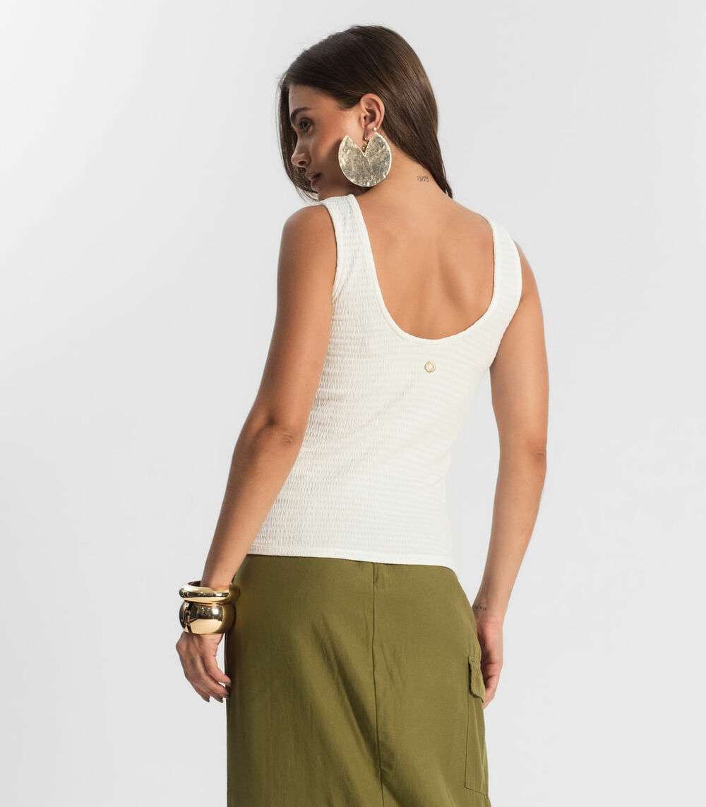 A Regata Feminina Endless é confeccionada em anarruga, um tecido leve e confortável, ideal para dias quentes. Seu material possui ótimo caimento e toque suave, proporcionando bem-estar durante o uso. A peça é versátil, podendo ser combinada facilmente com diferentes estilos de roupas, desde looks casuais até produções mais elaboradas. Perfeita para momentos de lazer ou para um visual descontraído, a regata é uma escolha prática e cheia de estilo.