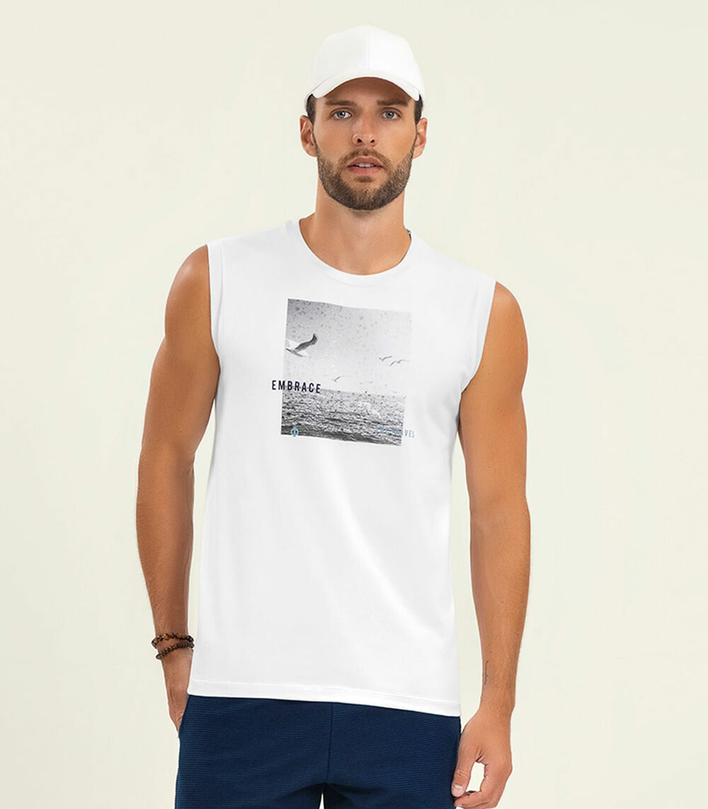 Regata Masculina Meia Malha Diametro Branco