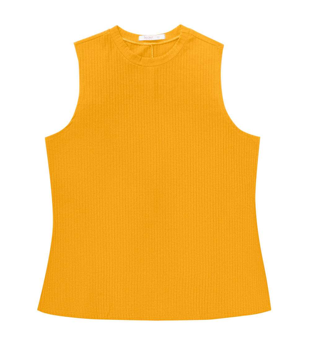 Regata Plus Size Em Ribana Canelada Secret Glam Amarelo