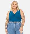 Regata Plus Size Em Ribana Canelada Secret Glam Azul