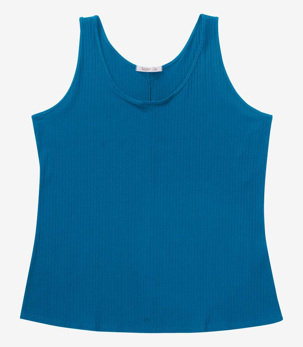 Regata Plus Size Em Ribana Canelada Secret Glam Azul