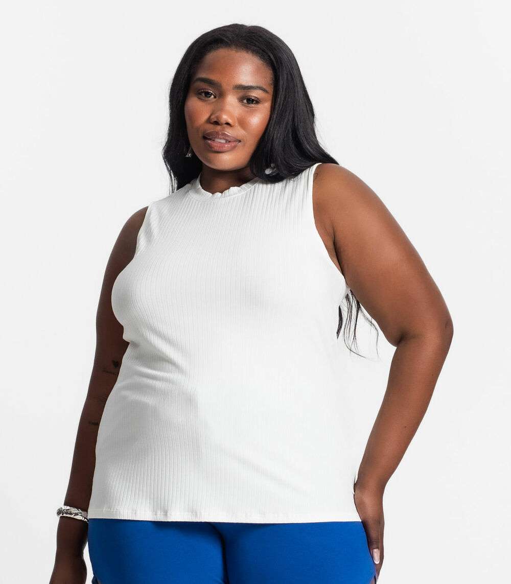 Regata Plus Size Em Ribana Canelada Secret Glam Bege