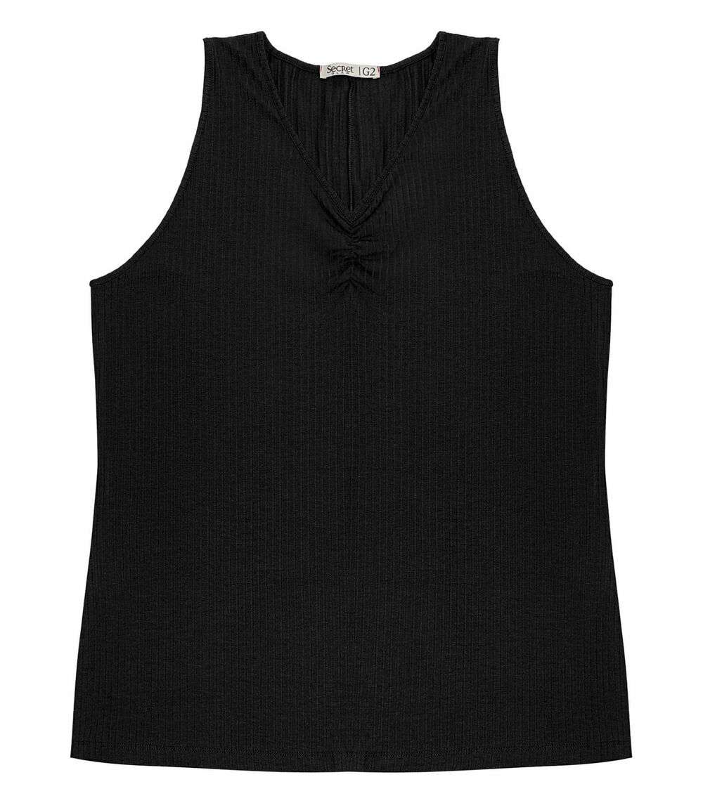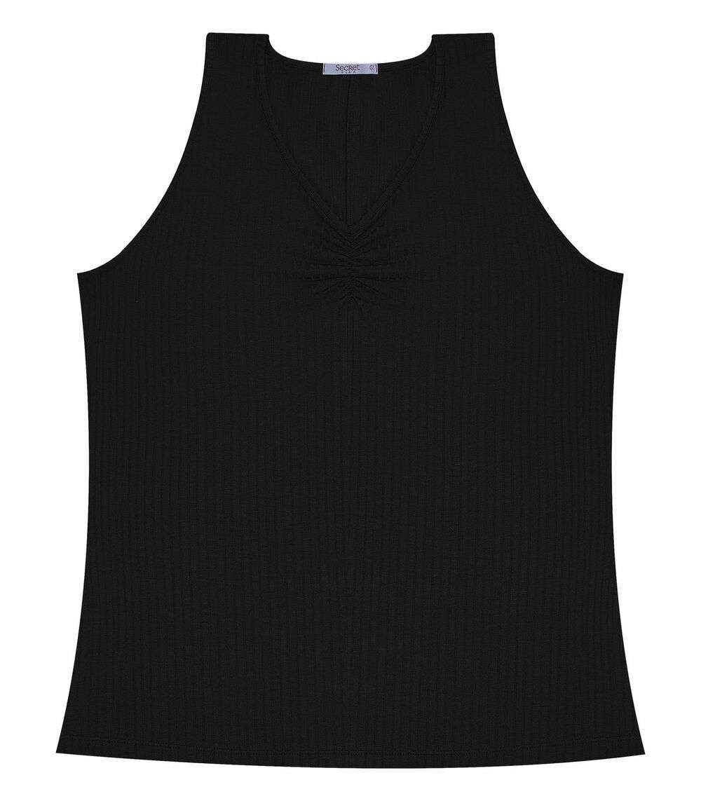 Regata Plus Size Em Ribana Canelada Secret Glam Preto
