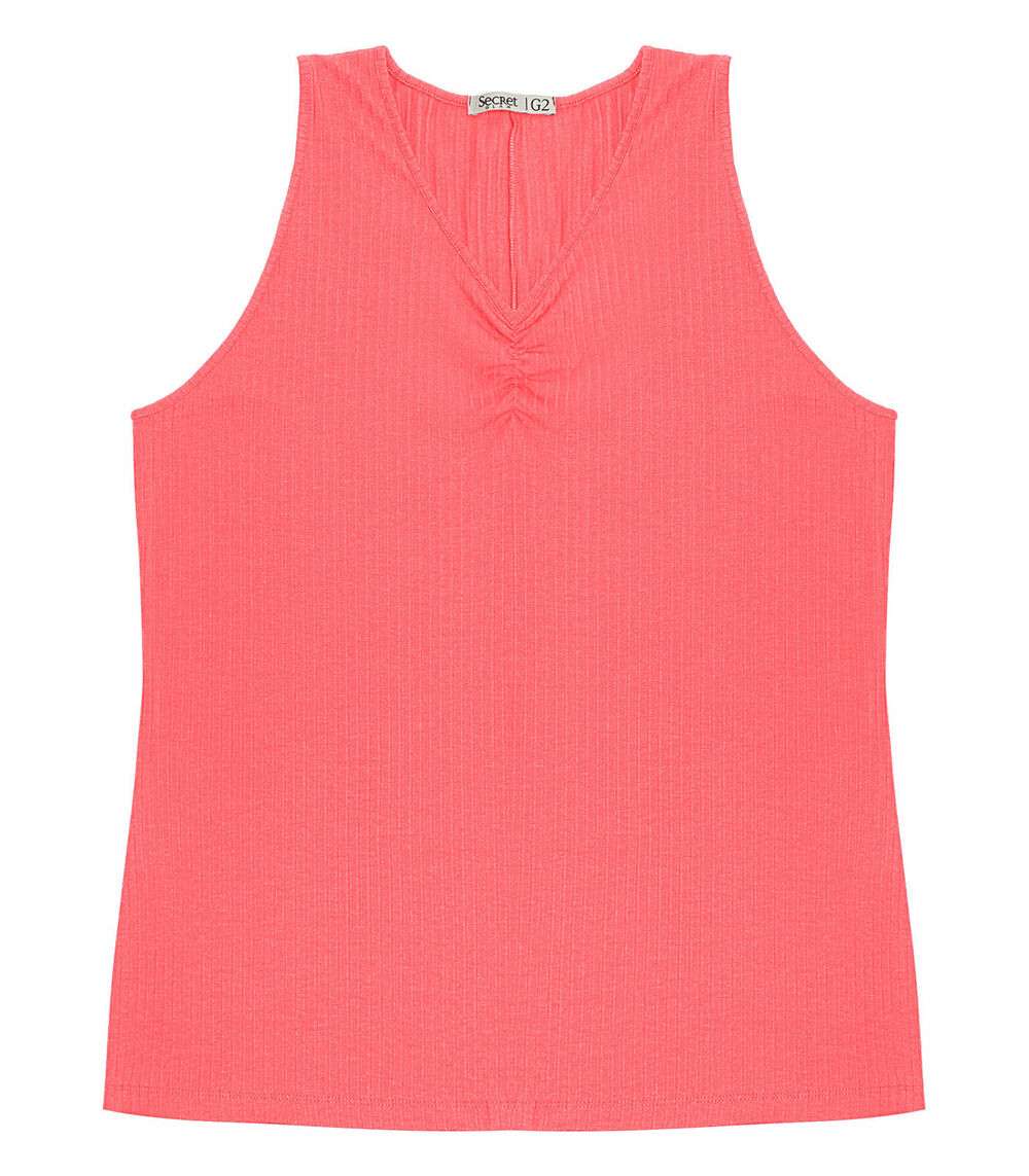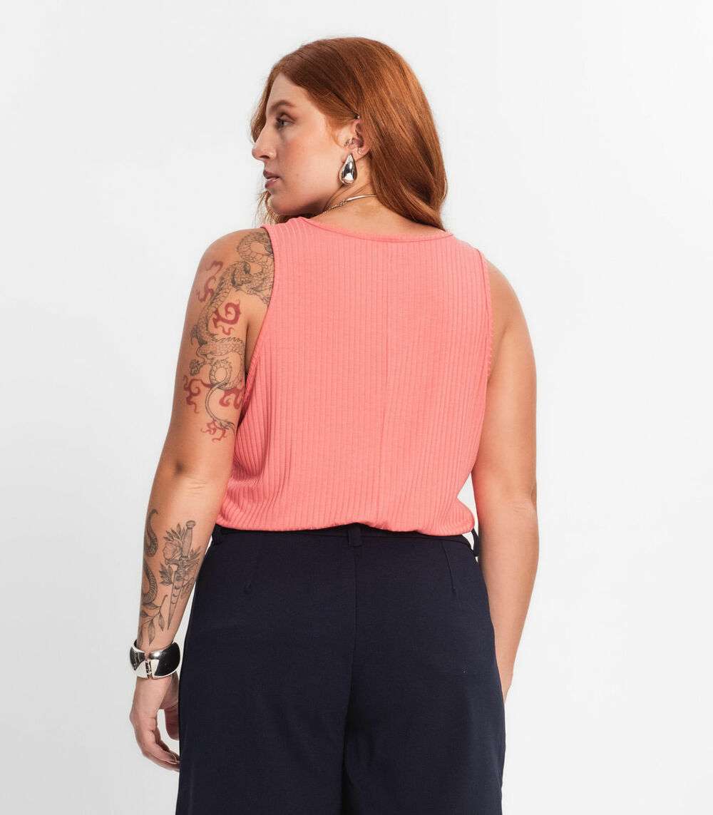 Regata Plus Size Em Ribana Canelada Secret Glam Rosa