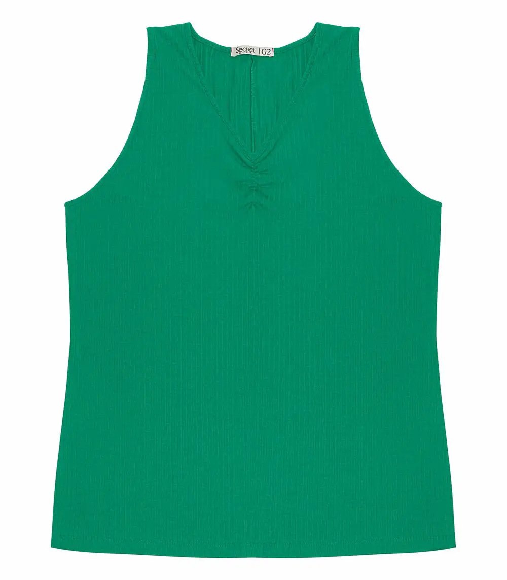 Regata Plus Size Em Ribana Canelada Secret Glam Verde