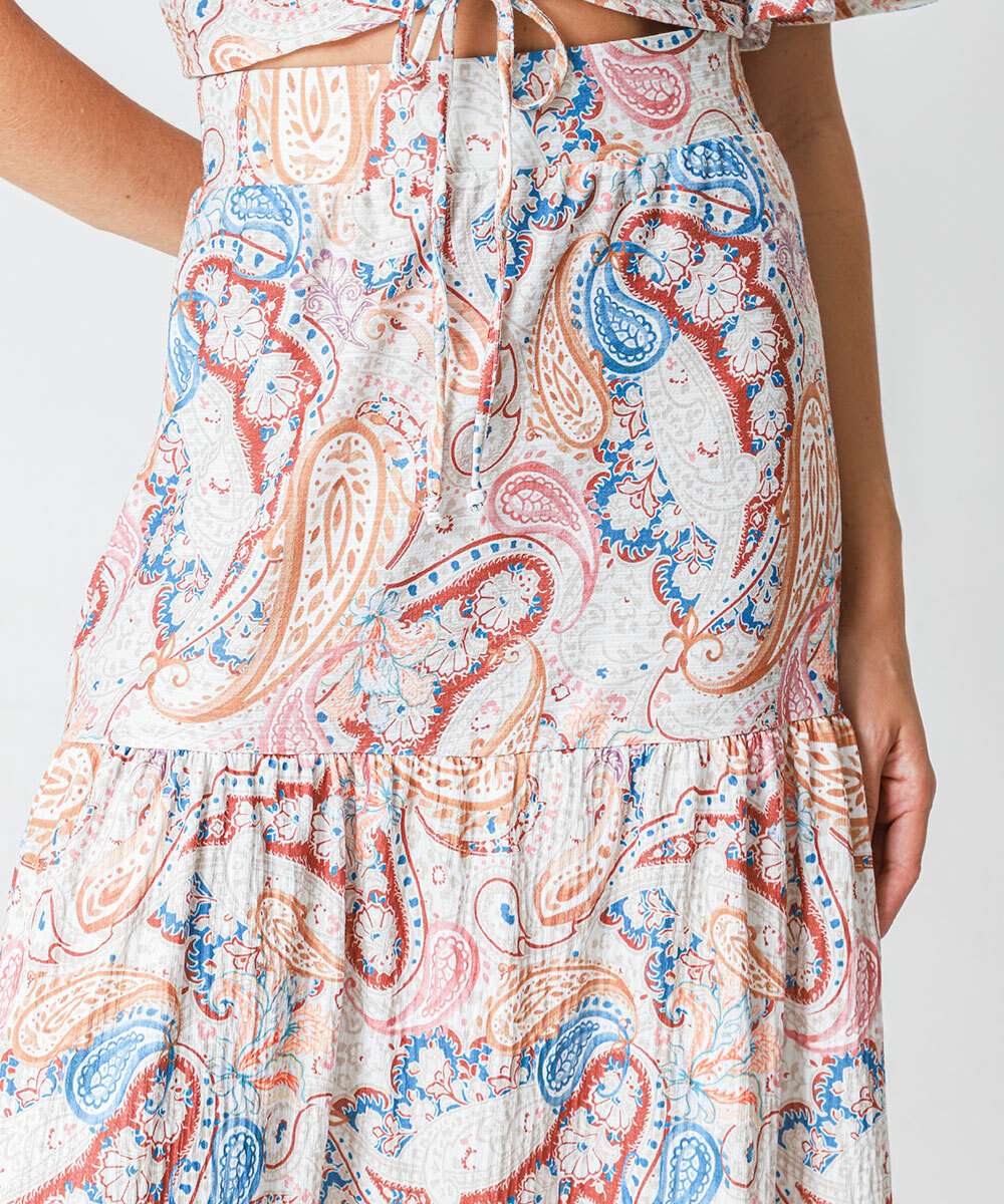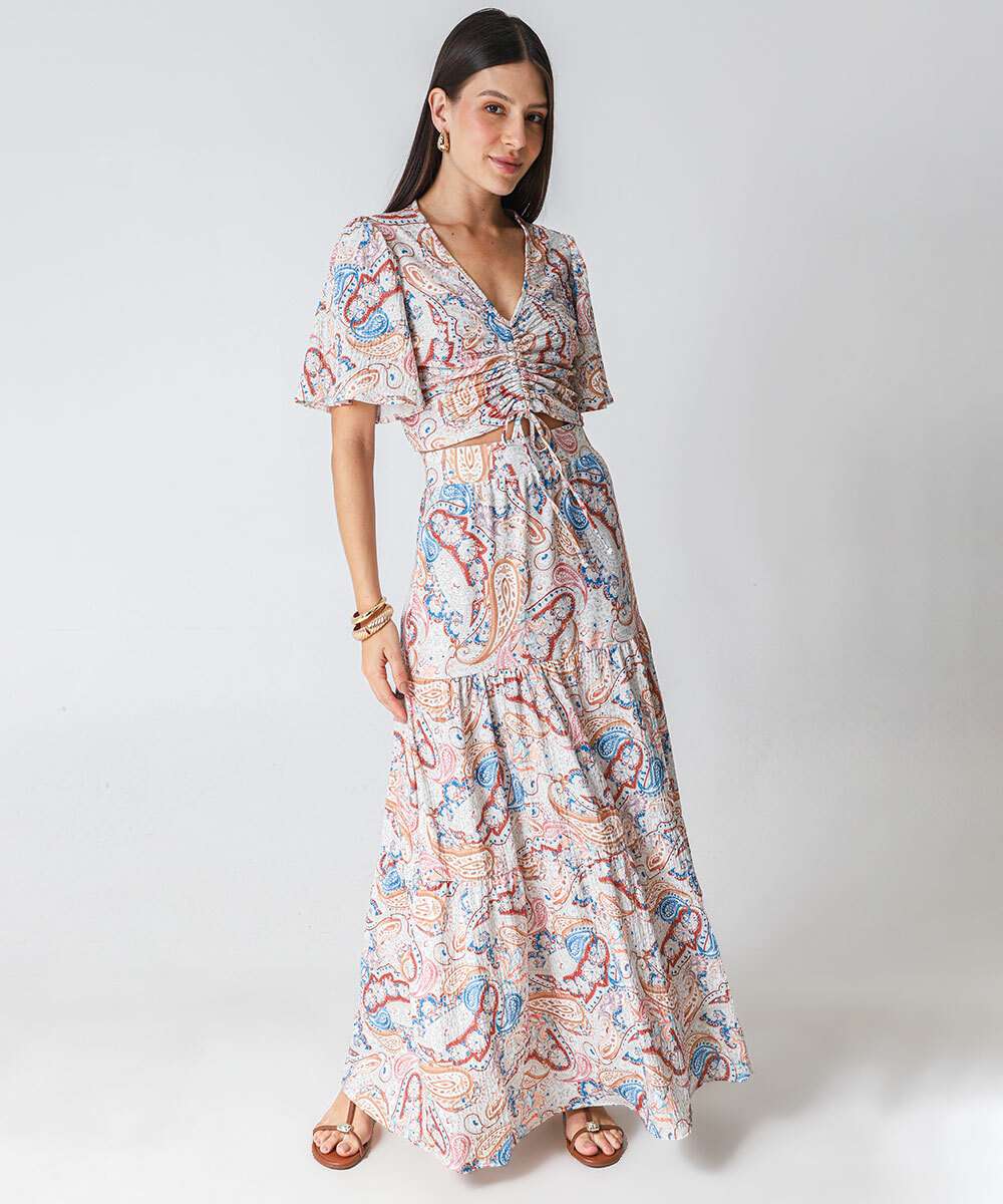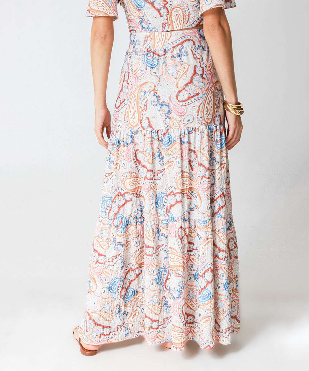 Saia Longa Jeans Feminina Estampa Pailey Marisa Bege