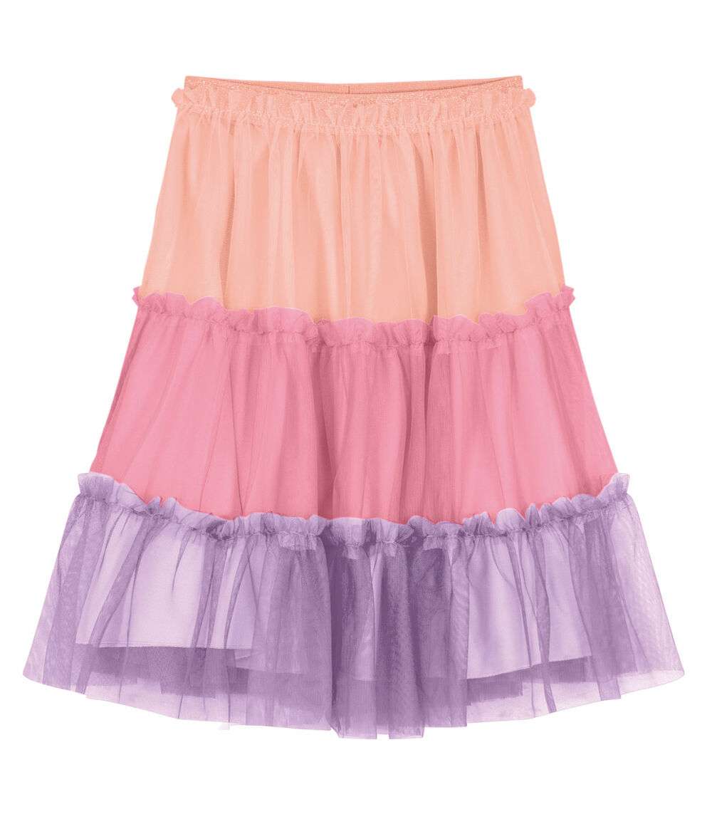 Saia Midi Infantil De Tule Com Babados Trick Nick Rosa