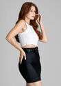 Saia sawary Confeccionada em tecido poliamida, esta saia oferece um caimento levemente estruturado, garantindo conforto ao longo do dia. Sua modelagem ajustada, cós possui passantes com cinto ajustavel largo valoriza a silhueta feminina.