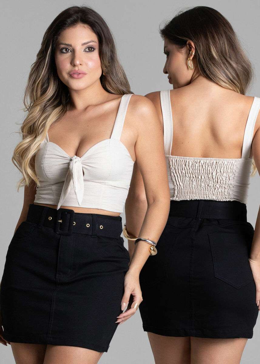 Saia sawary Confeccionada em sarja, esta saia oferece um caimento levemente estruturado, garantindo conforto ao longo do dia0. Sua modelagem ajustada, cós possui passantes com cinto ajustavel largo valoriza a silhueta feminina. Tecido: Sarja Tipo de lavagem: Color Cor: Preto