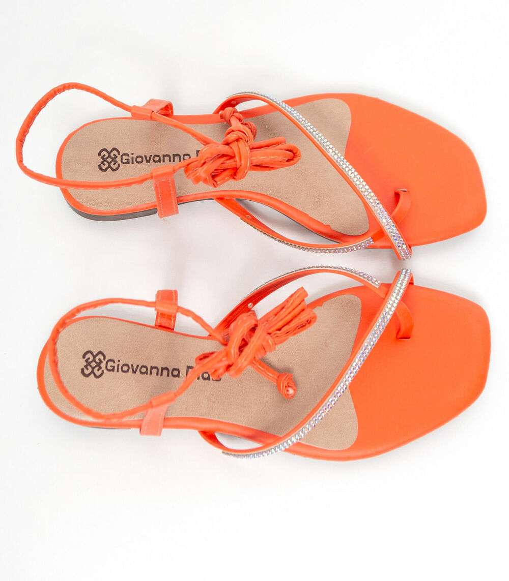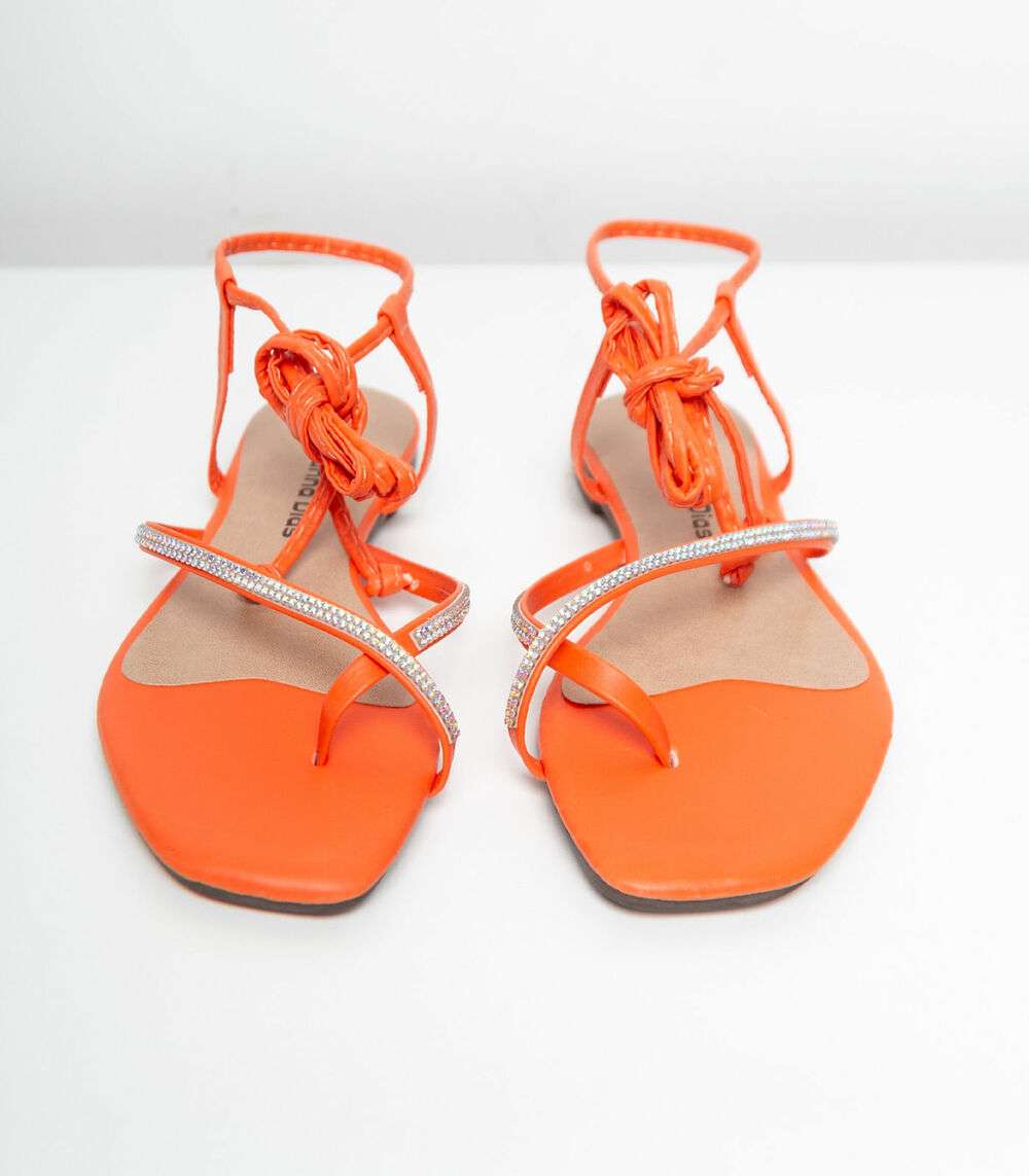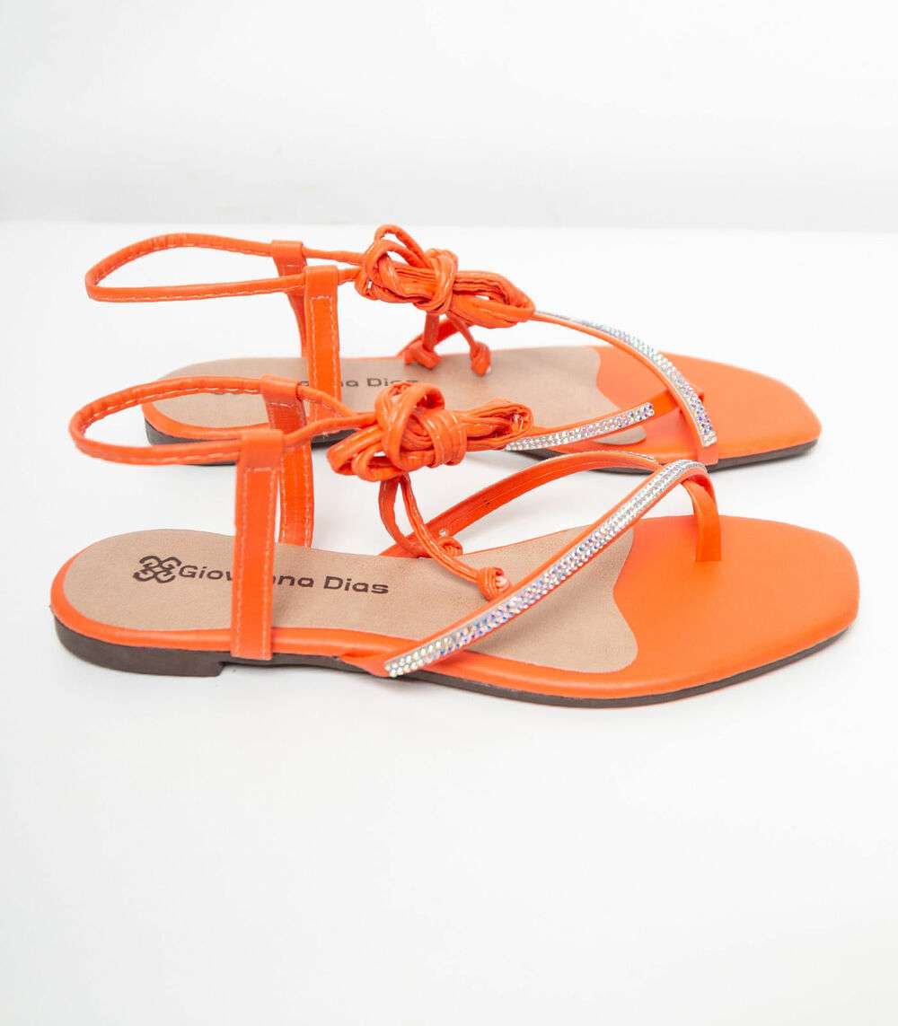 Sandália Feminina De Amarração E Strass Select Laranja