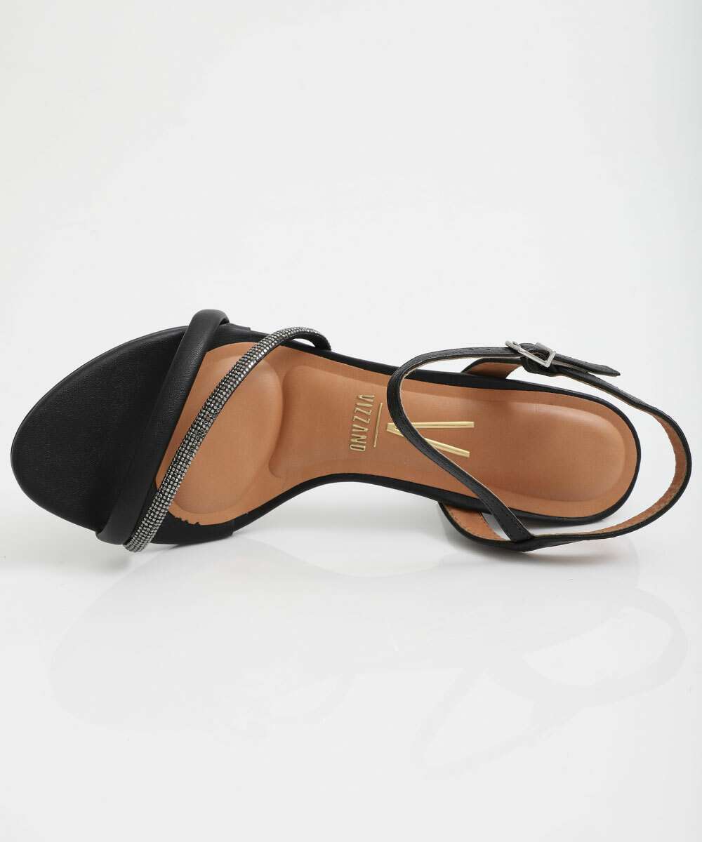 Sandália Feminina Salto Grosso Strass Vizzano Preto
