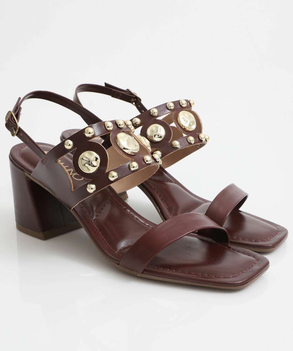 Sandália Feminina Salto Grosso Via Uno Vinho