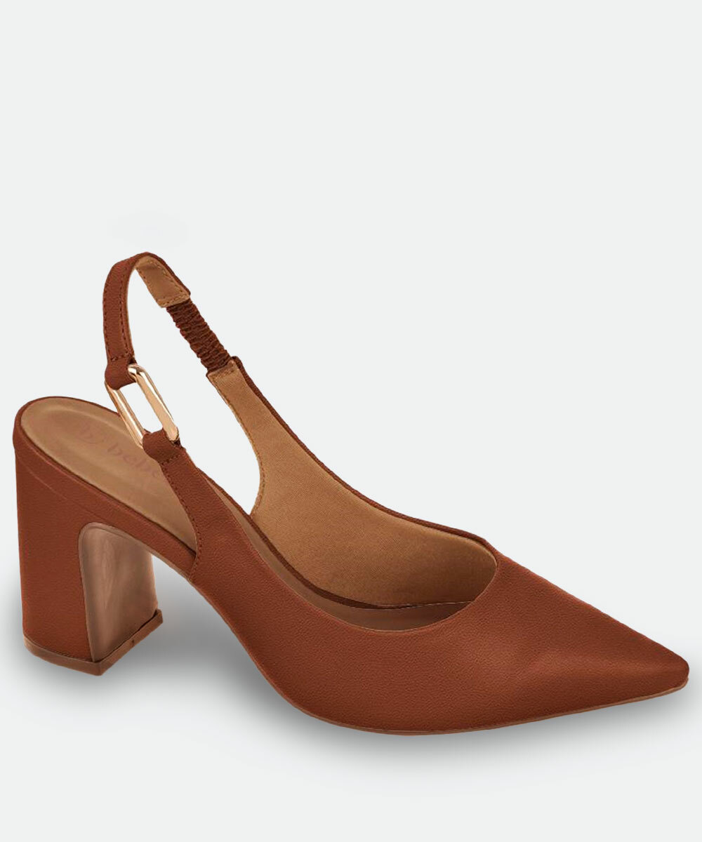 Scarpin Feminino Slingback Salto Grosso Bebecê Marrom