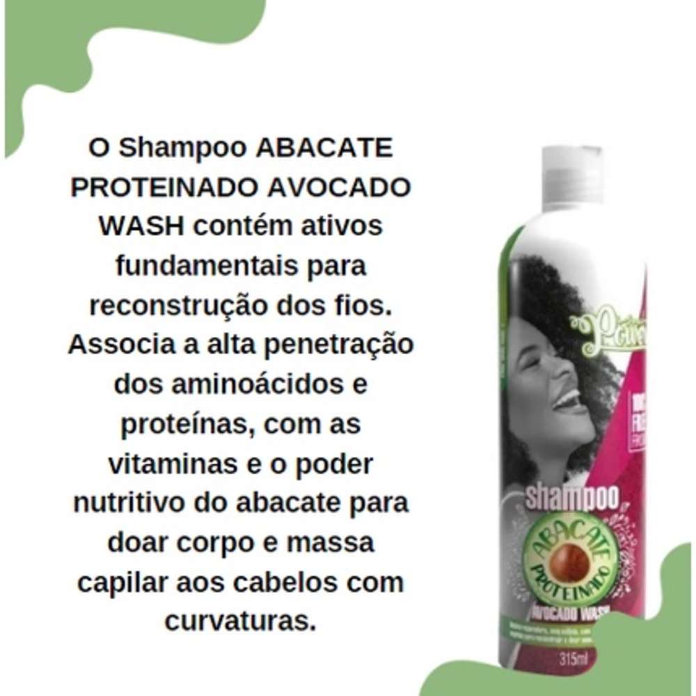 Soul Power Shampoo Abacate Proteinado 315ml O shampoo Abacate Proteinado contém ativos fundamentais para reconstrução dos fios. Associa a alta penetração dos aminoácidos e proteínas, com as vitaminas e o poder nutritivo do abacate para doar corpo e massa capilar aos cabelos com curvaturas. -Óleo de abacate: Óleo nutritivo, hidratante e emoliente.- Queratina vegetal: Proteína fibrosa de alta afinidade com a estrutura capilar, a queratina vegetal aumenta a umectação dos cabelos, restaura a massa capilar, conferindo melhor penteabilidade e brilho.-Aminoácidos: Complexo de aminoácidos contendo serina e carbocisteína, reduz os danos na superfície da fibra capilar, reparando e protegendo os fios.-Blend de proteínas: Sequência ideal de aminoácidos e proteínas em uma matriz aminofuncional que encorpa o fio aumentando o diâmetro da fibra capilar.-Mel Vegetal: Possui propriedades emolientes, remineralizantes, hidratantes e nutritivas aos fios, conferindo suavidade aos cabelos.-Colágeno Vegetal: Extraído da planta Acácia Senegal, que é rica em polissacarídeos, aminoáciods e proteínas com estruturas semelhantes ao colágeno humano, oferecendo precursores biológicos de alta afinidade com os cabelos, com poderosas propriedades hidratantes e formadoras de filme para impedir a perda de água.- Manteiga de Karité: Manteiga Vegetal com alto poder de hidratação, tem propriedade de reter a umidade e devolver a elasticidade e maleabilidade aos cabelos.
