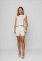 O short alfaiataria é a peça ideal para quem busca sofisticação aliada ao conforto.Confeccionado em tecido leve e encorpado, ele oferece um caimento impecável e um toque suave à pele.Sua modelagem de cintura alta valoriza a silhueta, enquanto as pregas frontais trazem movimento e um ar moderno ao visual.O design clássico é complementado por botões aparentes, além de passantes para cinto e bolsos laterais funcionais que garantem praticidade no dia a dia.Elástico na parte posterior do cós para melhor ajuste. Possui forro.Versátil e atemporal, o short transita facilmente entre produções casuais e elegantes, combinando perfeitamente com blusas, camisas ou tops. • Cintura alta com pregas frontais • Bolsos laterais funcionais • Passantes para cinto • Caimento estruturado e confortável • Possui forro Medidas da modelo: Altura 1,73cm | Busto 86cm | Cintura 67cm | Quadril 99cmModelo veste P.Composição: 70% Viscose, 30% Linho. Forro: 100% Poliéster.