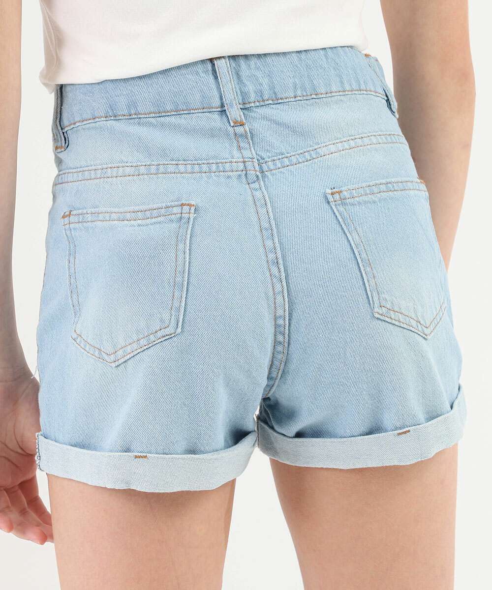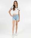 Short Juvenil Jeans Cintura Alta Barra Dobrada Tam 10 a 16 Azul