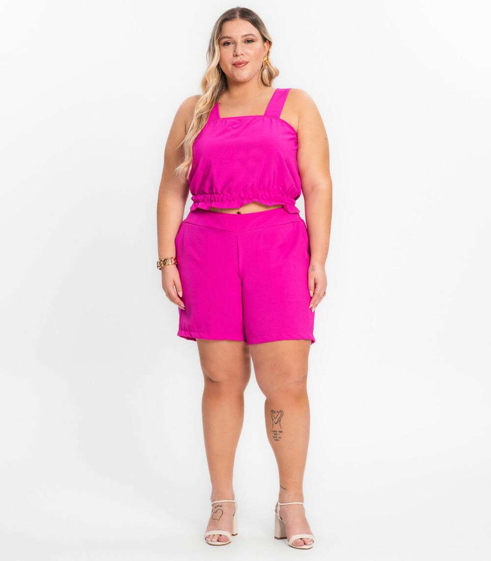 Shorts Feminino Plus Size Crepe Light Secret Glam Rosa