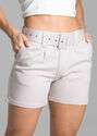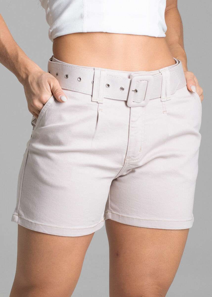 Shorts confeccionada em sarja. Modelagem soltinho. Cintura média Fechamento com botão cós acompanha cinto Bolsos frontais e bolsos traseiros funcionais Barra simples Tecido: Sarja Tipo de lavagem: Color Cor: bege