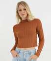 Suéter Feminino Cropped Gola Alta Marisa Marrom
