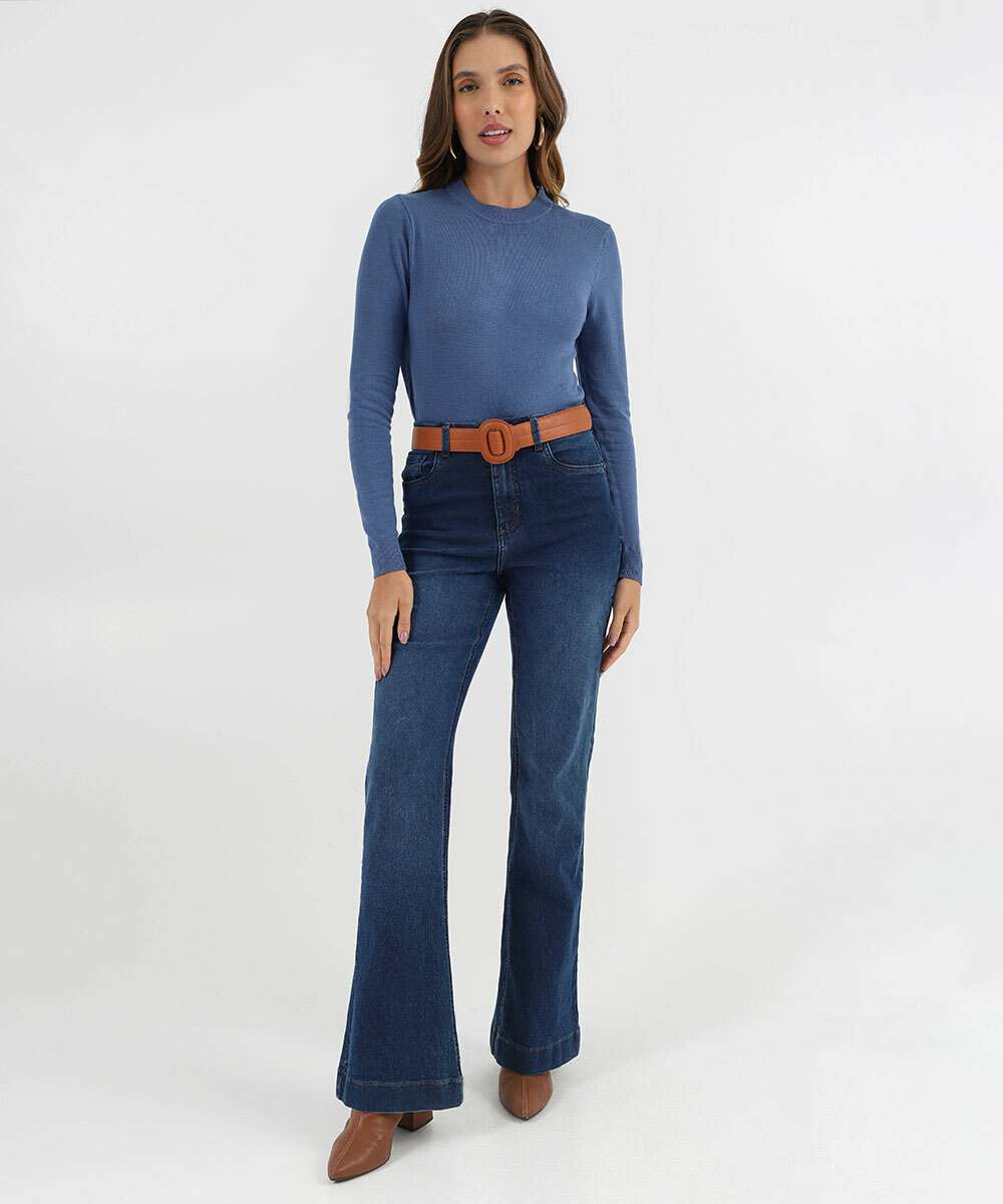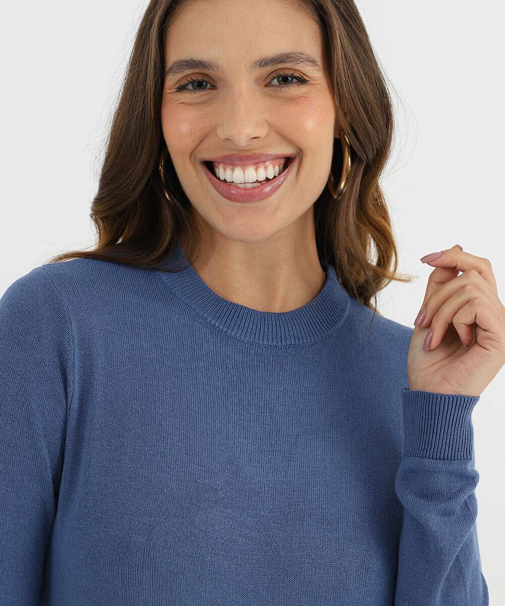 Suéter Feminino Liso Gola Careca Marisa Azul