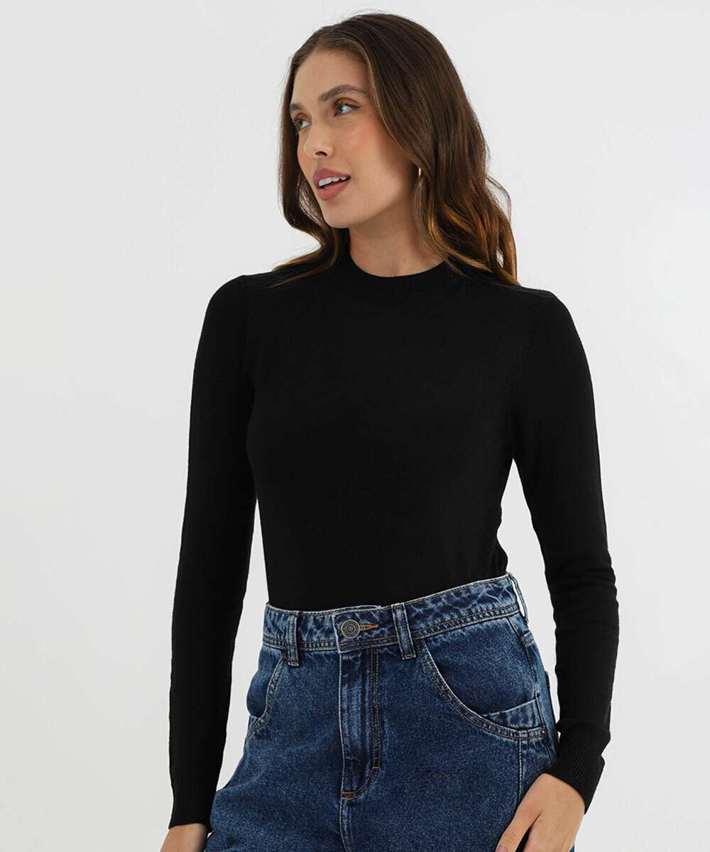 Suéter Feminino Liso Gola Careca Marisa Preto