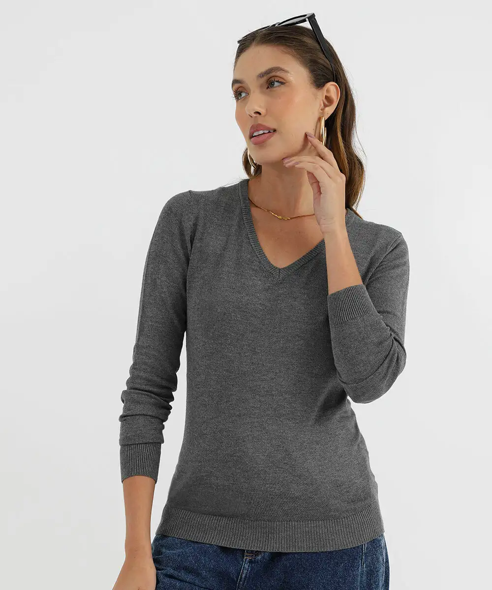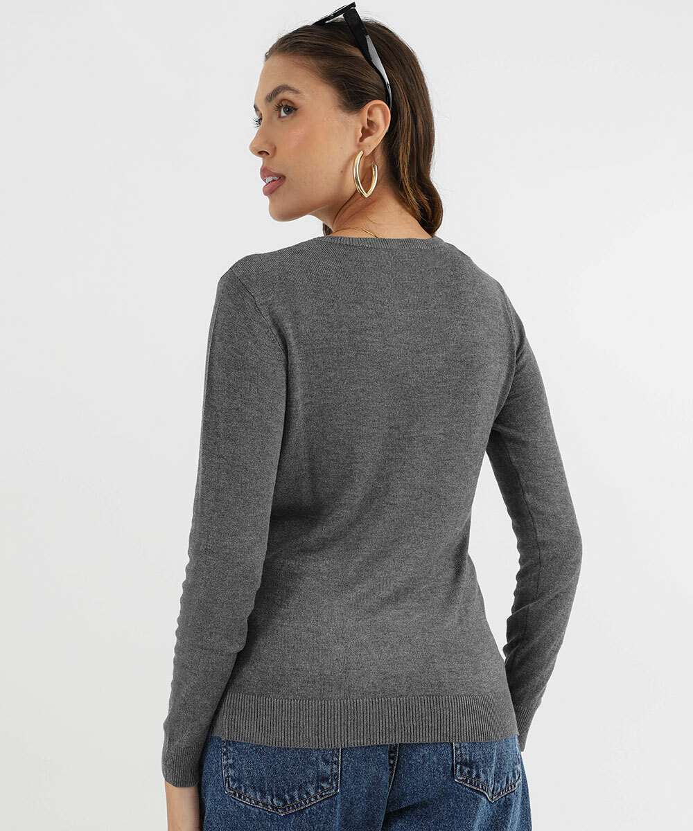 Suéter Feminino Mescla Gola V Marisa Cinza