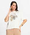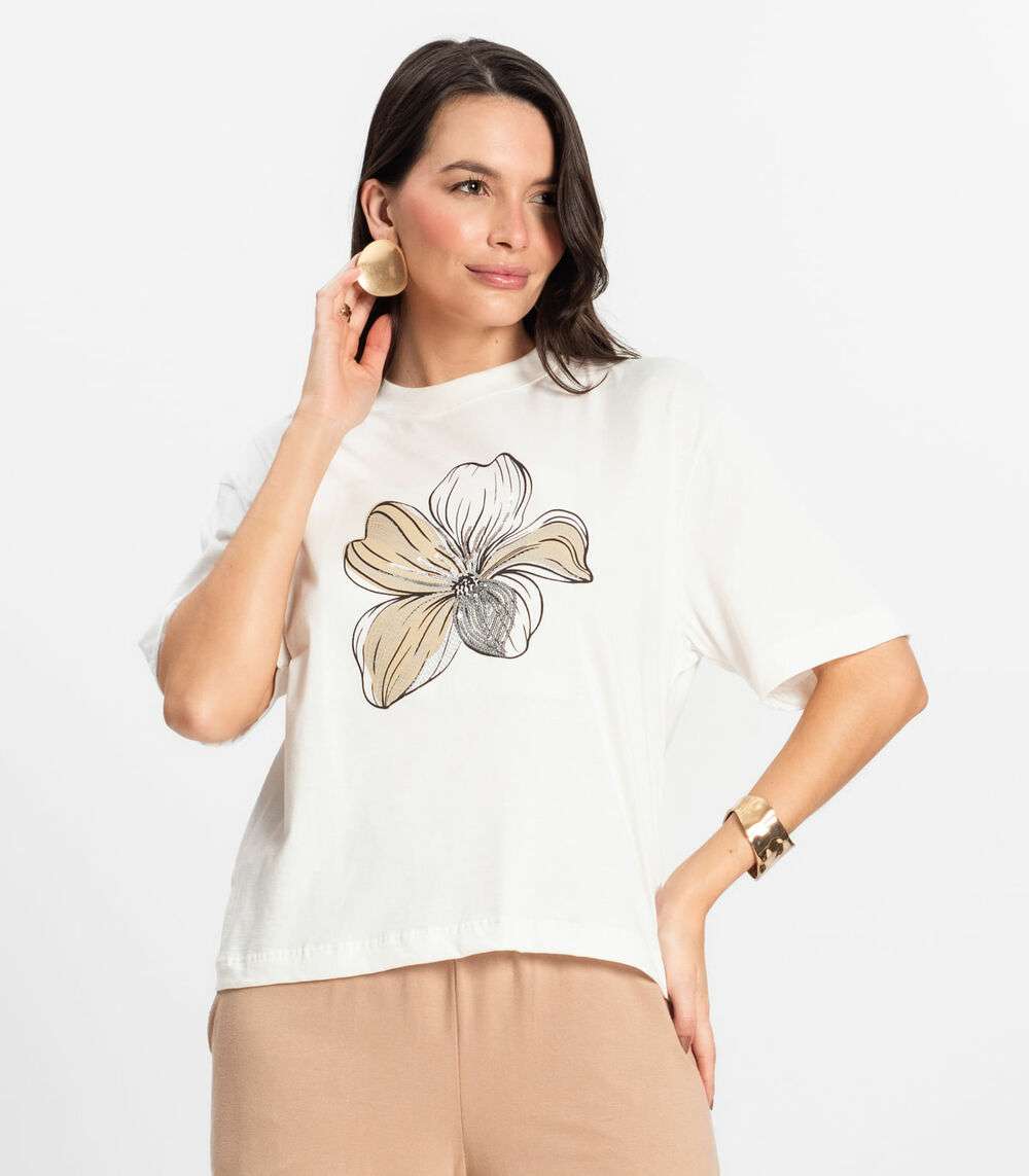 T- Shirt Box Feminina em Meia Malha Rovitex Bege