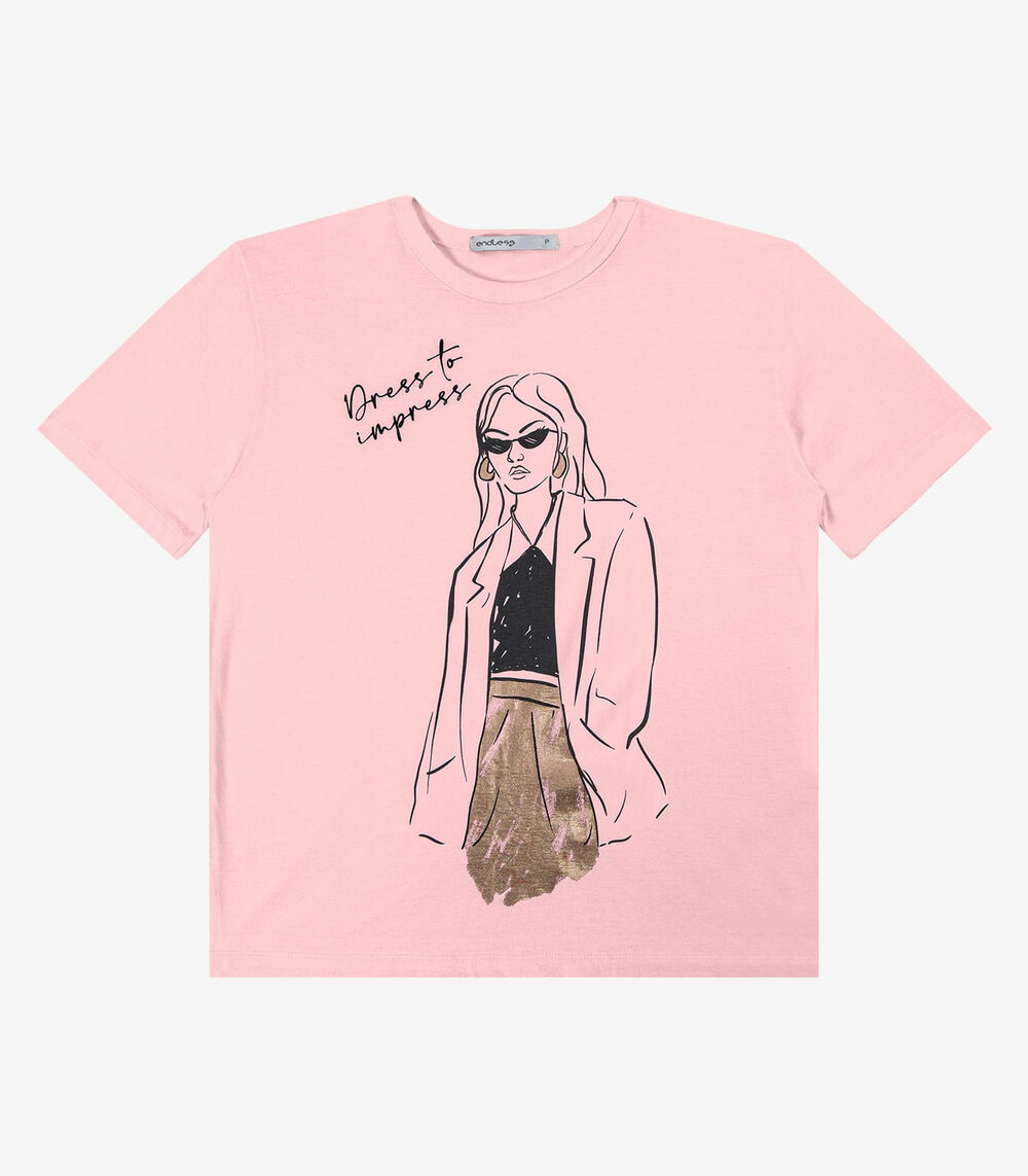 T- shirt em Meia Malha Feminina Endless Rosa